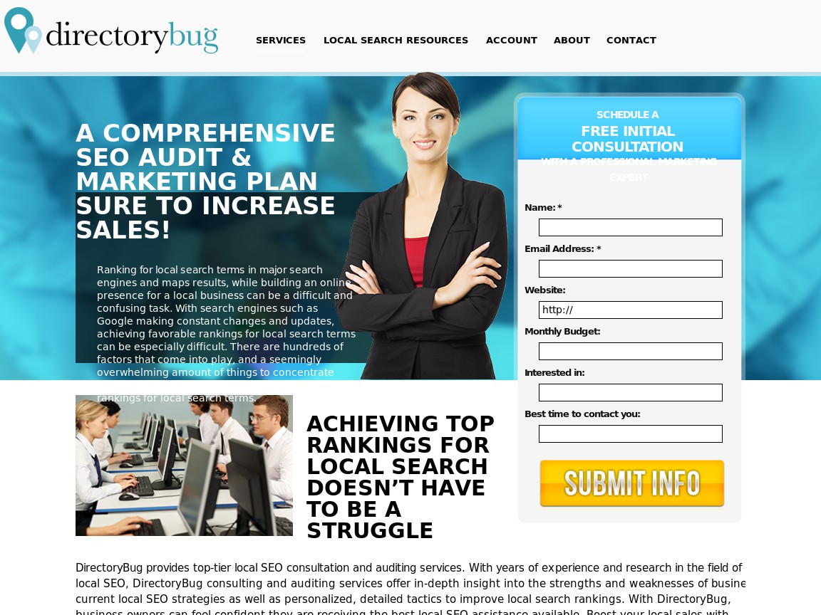 DirectoryBug was created out of a passion for small business marketing and supporting local businesses. Observing a growing demand for truly effective and impressive local online marketing services, DirectoryBug set out to raise the quality standards in the local SEO industry and revolutionize local search marketing with innovative local search tools and local SEO services. Our mission is to provide marketing professionals and business owners with affordable solutions to effectively market a business online the way it should be – without sacrificing quality.